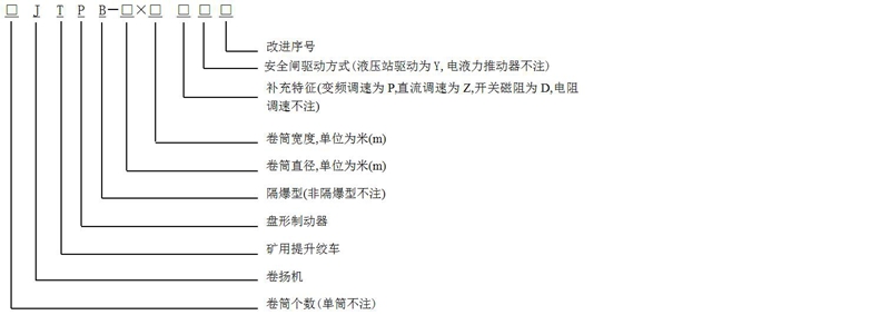 提升絞車型號表示方法應符合MT/T 154.8-1996的規定。